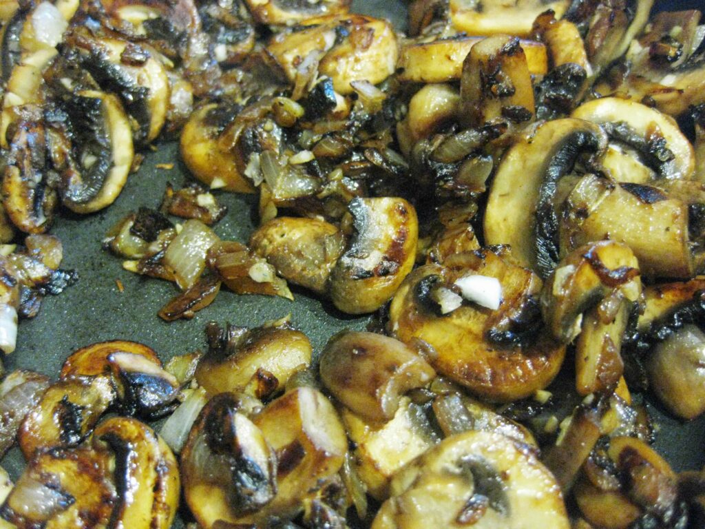 - Once softened, add the thicker mushrooms first like portobello or oyster. Stir once. Raise heat slightly and cook, stirring only occasionally until mushrooms become brown. If mushrooms are very dry, add a sprinkle of salt. Add the other half of the mushrooms and continue cooking until all of the mushrooms are cooked and brown. There should not be a lot of liquid in the pan; if there is, raise the heat to try to cook off the liquid.
